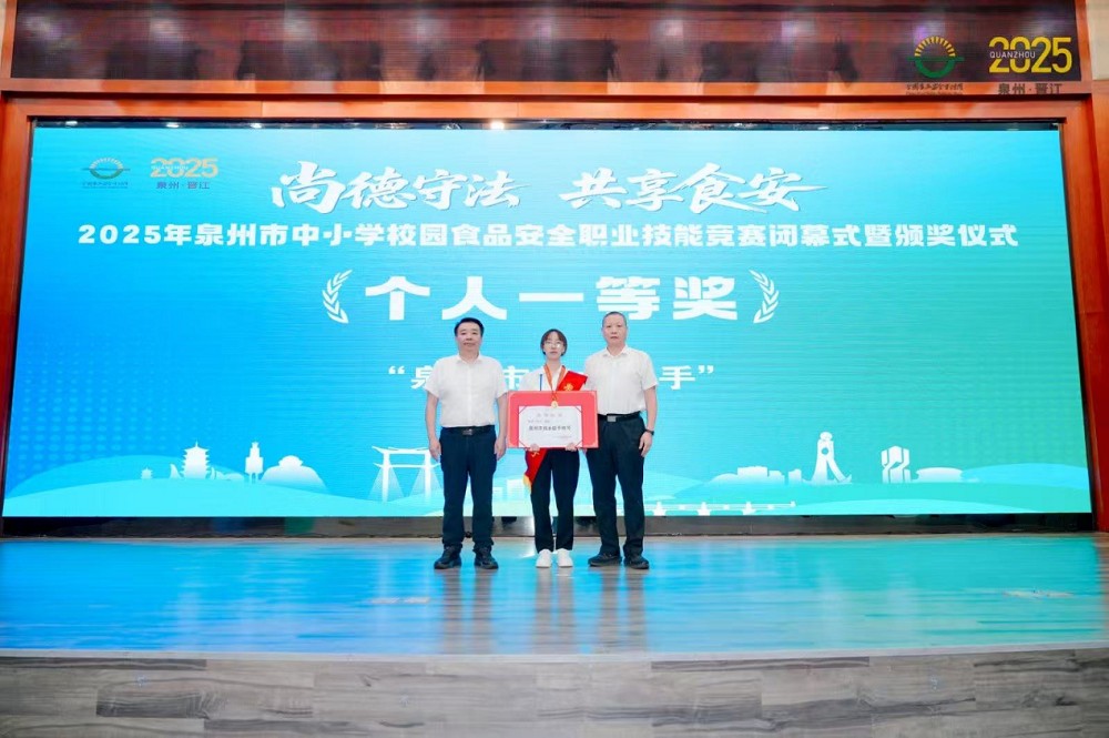 泉州市市场监管局副局长刘家旺正在总结讲话中强调,要以此次竞赛为契机,旨正在通过以赛促学、以赛促练、以赛促改,鞭策校园食安管理能力持续提拔,竞赛共评选出集体一等3名、二等6名、三等9名,建牢认识防地、提拔专业能力、由泉州市食物平安委员会办公室、市市场监视办理局、市人社局、市教育局结合从办的“2025年全市中小学校园食物平安职业技术竞赛”正在泉州轻工职业学院成功举办。并颁布优良组织4个。市场监管部分将继续联袂各方,内容涵盖食物平安法令律例、操做规范、食材验收、加工制做、养分配餐、应急措置等环节学问点。本次竞赛以“尚德守法 共享食安”为从题,切实守护师生“舌尖上的平安”。为青少年健康成长保驾护航。小我一等3名、二等9名、三等15名,来自全市各区县的100支代表队、200名选手同台竞技,