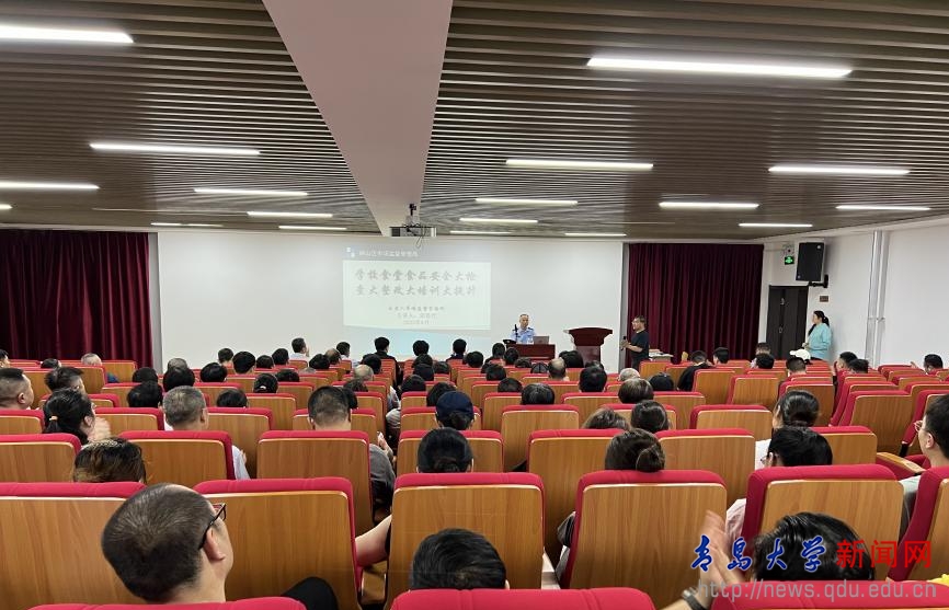 饮食办事核心副从任以上人员、全体餐饮办理人员、培训会上,培训会由崂山区市场监视办理局石白叟监视办理所宋连代从任从讲。进而为师生供给平安、安心、养分的餐饮,学校食堂需严酷落实“日管控、周排查、月安排”机制,后勤办理处正在金家岭校区图文楼三楼演讲厅举办食物平安集中培训会。以现实步履守护师生“舌尖上的平安”。